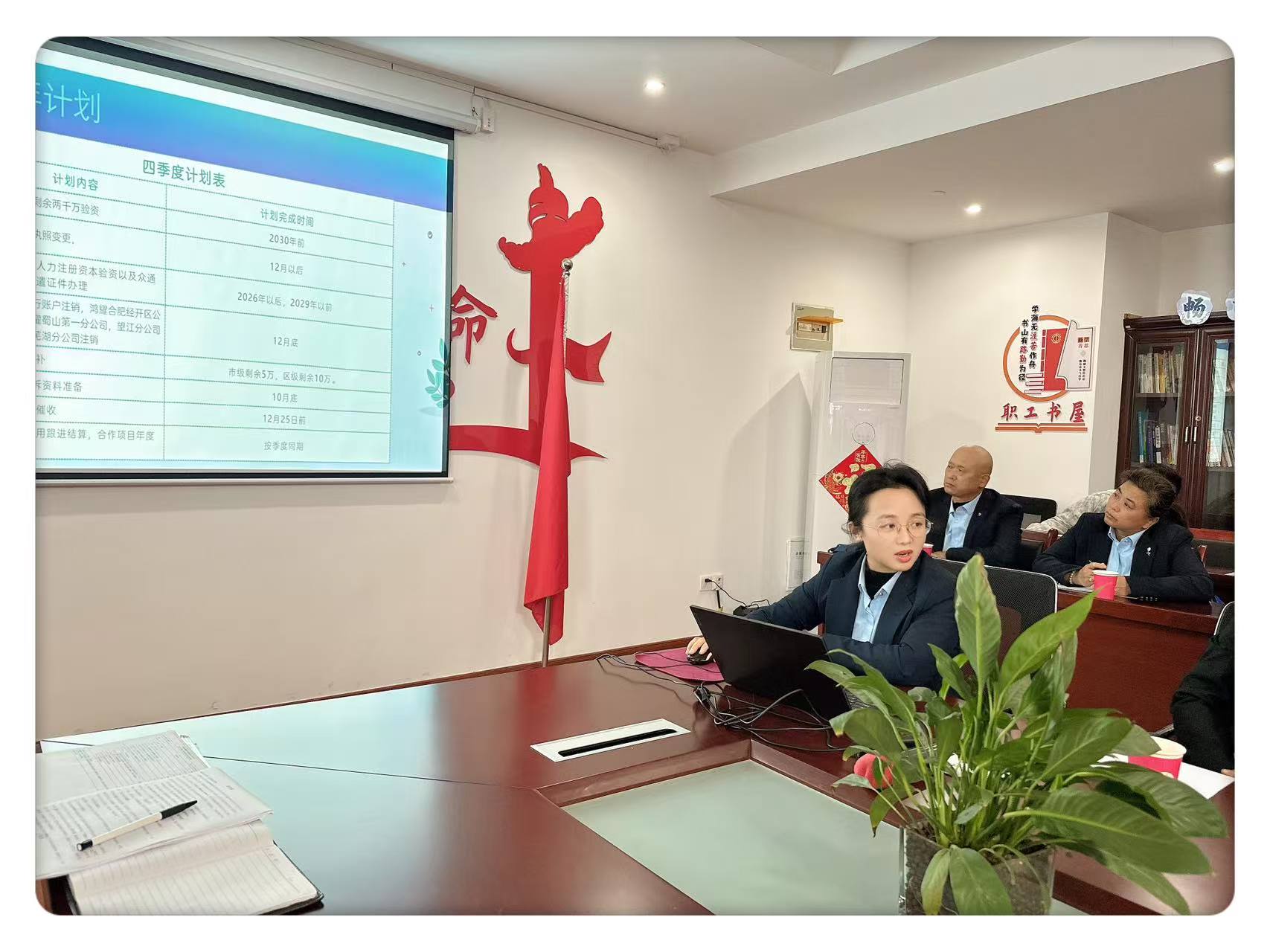 2025年10月25日,安徽鸿耀城市运营服务有限公司第三季度工作例会在总部召开。党支部书记、总经理戈有国,李新春、陈厚平等高管团队,公司职能部门、合肥市城区项目负责人及业务骨干参加现场会议,外地项目负责人通过视频的方式参加。