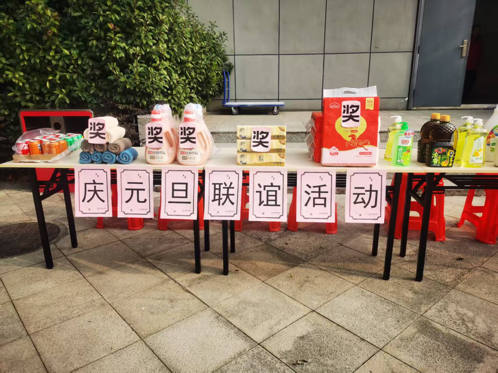本次活动紧扣联谊暖心、互动同乐的核心,适配不同业态项目需求,打造了丰富多元的活动环节,现场节日横幅醒目亮眼、暖意融融,处处洋溢着辞旧迎新的喜庆氛围。趣味套圈与幸运抽奖环节轮番登场、人气爆棚,现场整齐摆放大米、食用油等实用好礼,大家踊跃参与。欢呼声、喝彩声此起彼伏,在轻松愉悦的互动中拉近距离、增进默契,定格温馨瞬间。