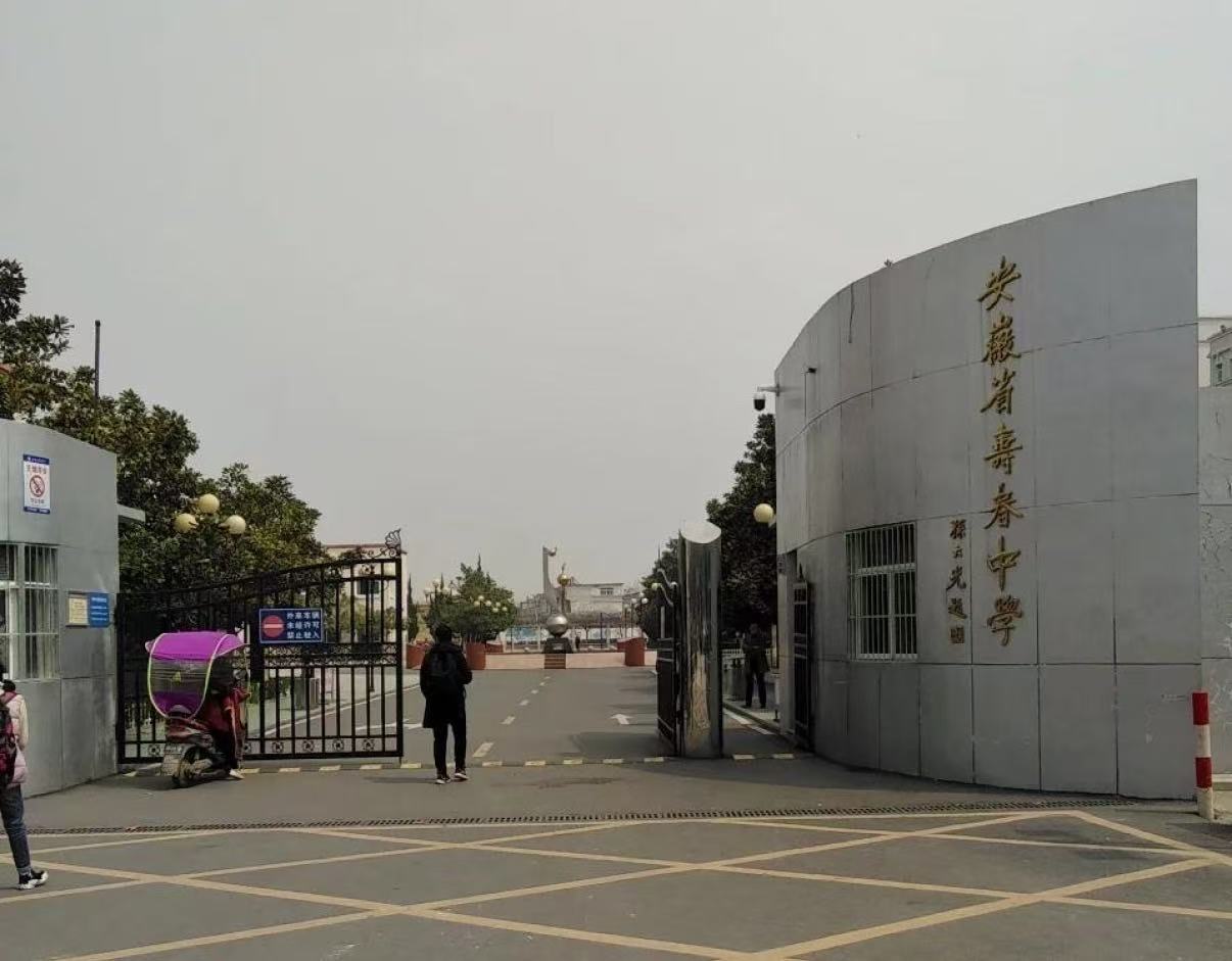 寿县寿春中学位于新城区通淝路与寿蔡路交叉口南 200 米,占地 35321.79平方米,建设主体有:智学楼 1 栋、立德楼 1 栋、风雨操场 1 栋、践行馆 1 栋、学生公寓 1 栋、艺术馆、另有南、北两处厕所、运动场体育看台、配电房、校大门值班室、保卫科等附属工程,总建筑面积约 2.1 万平方米,在校学生约 3500余人,在职教职工 213 人。